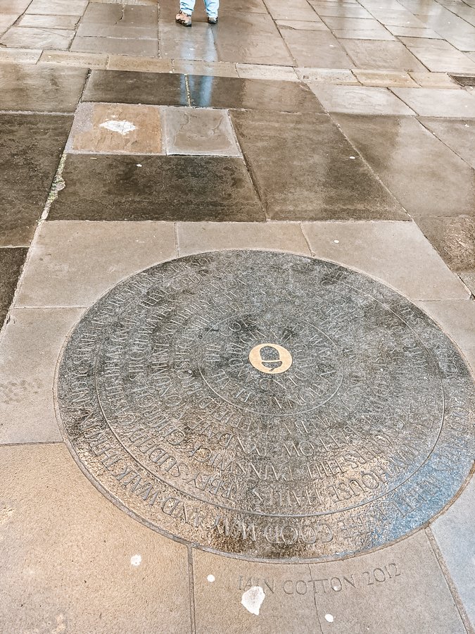 A beautifully ornate building, the perfect setting to finish such a tremendous walk. And on the ground in front of the Abbey is a large stone circle, mimicking the one found at the other end of the walk, just outside the marketplace in Chipping Campden.