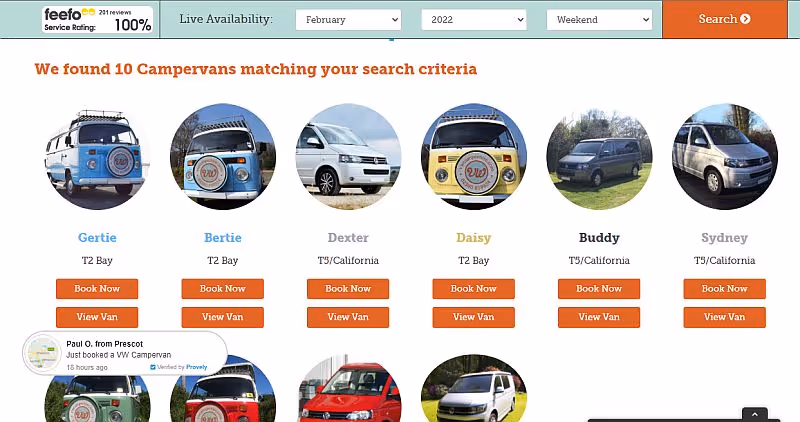 Goboony has every vehicle you could think of including small vans, VW’s and large motorhomes.