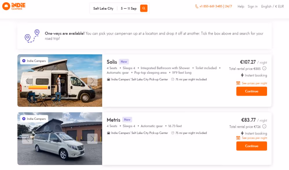Indie Campers has two vehicles available to hire in Salt Lake City.