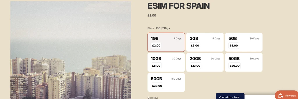 It's also worth mentoning that they have a Europe eSIM plan too, which covers 40+ European countries (including Spain), so if you're planning on dipping into any other neighbouring countries on your trip, then it's worth a look.