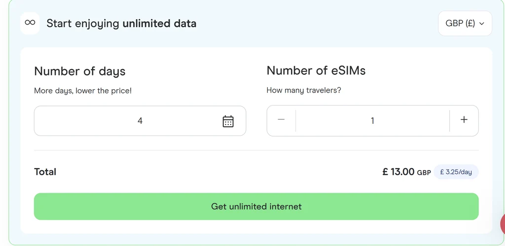 Holafly also gives flexibility: you can pick how long you need the eSIM — whether you’re visiting for a weekend jaunt, a two-week holiday, or staying months.