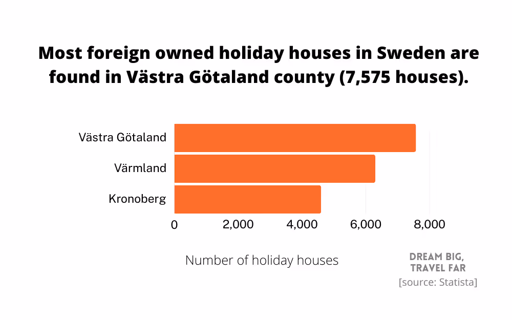 34. Most foreign owned holiday houses in Sweden are found in Västra Götaland county (7,575 houses).