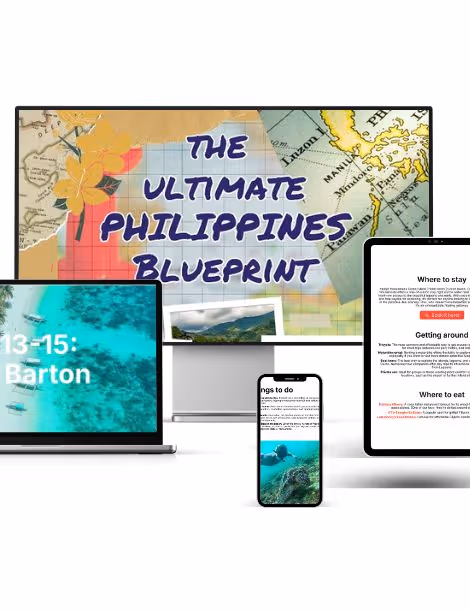 Planning your dream trip to the Philippines shouldn’t be overwhelming or time-consuming! The Ultimate Philippines Bundle provides everything you need to explore the islands effortlessly, with a detailed, customizable itinerary and interactive Google Maps.