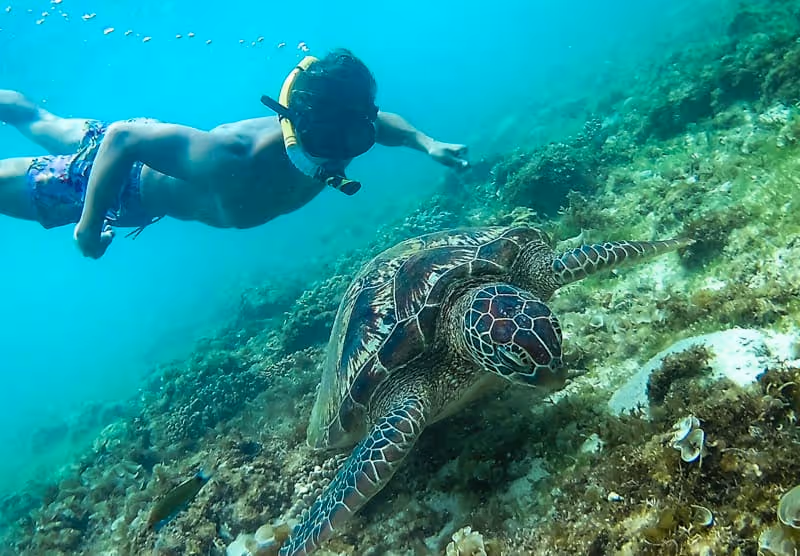 You can pre-book your spot online with this turtle watching tour, where you’ll depart from Bohol to see both sea turtles and dolphins.